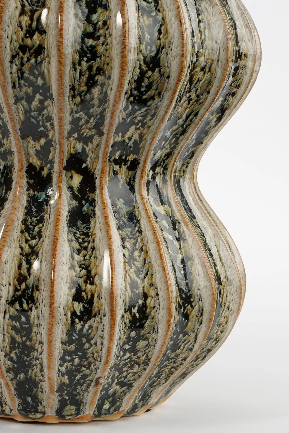 Verfraai Je Huis Met De Pippa Vaas Van Mica Decorations, Of Je Nu Kiest Voor Bloemen Of Niet. De Vaas Is Handgemaakt Van Stevig Keramiek, Prachtig! Door De Warme, Groen/Beige Kleur En Het Unieke Design Springt Deze Vaas Direct In Het Oog. Erg Mooi Met Bloemen, Pluimen Of Siertakken! De Pipa Collectie Bestaat Uit Meerdere Vazen In Verschillende Kleuren, Maten En Kunnen Ook Leuk Met Elkaar Gecombineerd Worden. Deze Groene Vaas Is 23 Cm Hoog En Heeft Een Diameter Van 13 Cm. Ideaal Voor Op Tafel! Waar Zet Jij Deze Keramieken Vaas Neer? Let Op: Omdat Dit Een Handgemaakt Product Is, Kan De Kleur, Maat Of Vorm Bij Ieder Item Iets Afwijken. Daarnaast Zijn Keramieken Vazen Poreus En Nooit 100% Waterdicht.