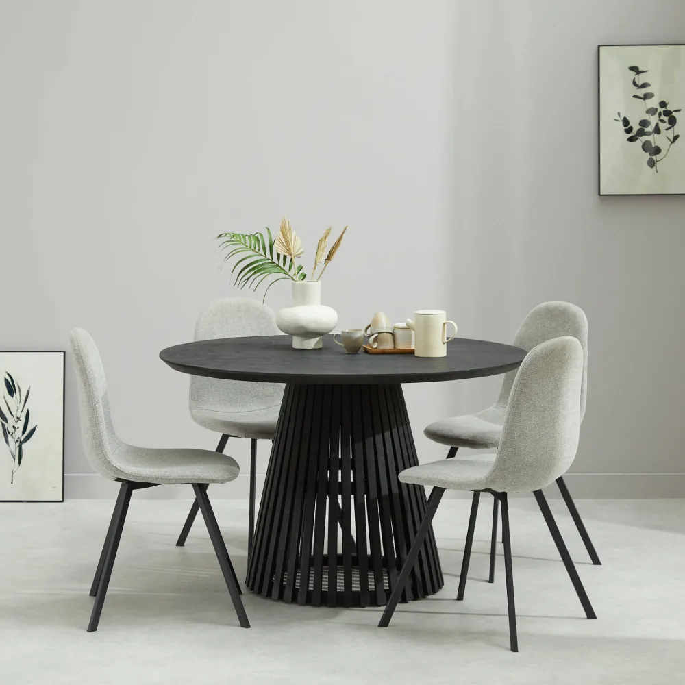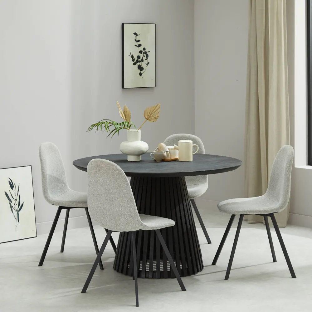 Eetkamertafel Sansa Is In Verschillende Kleuren Verkrijgbaar Met Een O120 Cm (4-6 Personen) Of O140 Cm Tafelblad (6-8 Personen).