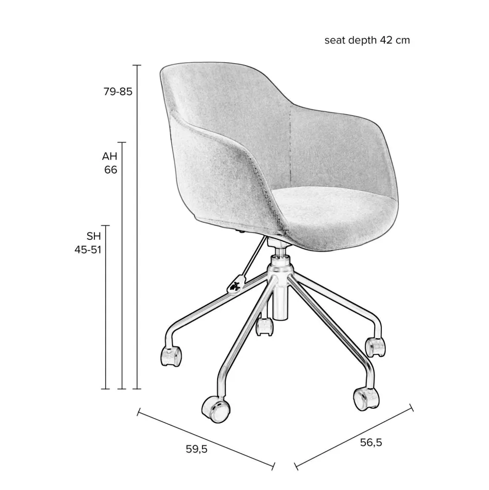 Vind Je Het Lastig Om De Perfecte Zithoogte Te Vinden Voor Aan Je Bureau? Bureaustoel Junzo Is Verstelbaar In De Hoogte Door De Hendel. Zo Zit Jij Op De Gewenste Hoogte Aan Je Bureau!