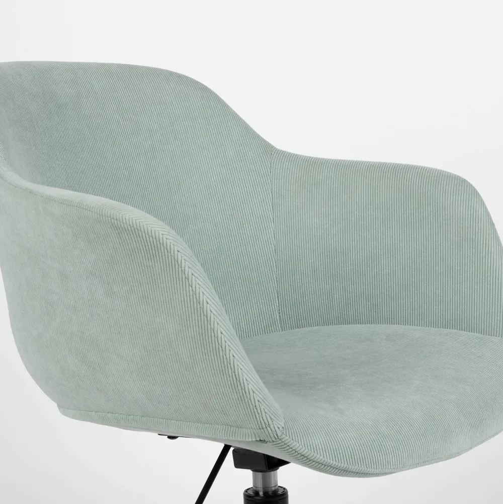 Bureaustoel Junzo Is Een Elegante Stoel Voor Aan Je Bureau. De Zitting, Armleuning En De Rugleuning Zijn Rond Afgewerkt En Bekleed Met Een Zachte Ribstof. Deze Perfecte Combinatie Zorgt Ervoor Dat Je Lekker Zit En Kunt Werken Aan Je Bureau. De Vijf Poten Zijn Van De Stoel Zijn Van Staal En Afgewerkt Met Een Zwarte Poeder Coating. De Wielen Daaronder Zijn Van Kunststof. Bureaustoel Junzo Is Misschien Wel Jouw Nieuwe, Favoriete Bureaustoel! Junzo Is Verkrijgbaar In Twee Kleuren: Grijs En Lichtgroen. Het Design Van De Stoel Is Rond Afgewerkt, Wat Ervoor Zorgt Dat Je Urenlang Op De Stoel Kunt Zitten. Ideaal Voor Thuisstudie Of Als Je Werkt Vanuit Huis. Bureaustoel Junzo Is Ook Verkrijgbaar Als Eetkamerstoel In Meerdere Kleuren.