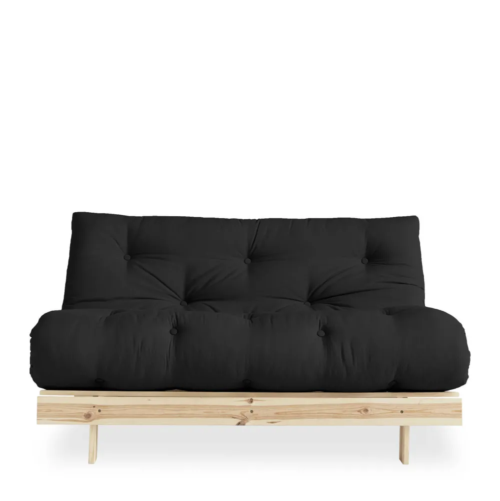 Het Frame Van De Roots Is Van Massief Grenen. Het Futonmatras Is Gecapitonneerd En Bekleed Met Een Mooie Stof. De Combinatie Van Het Houten Frame En Stof Zorgt Voor De Stijlvolle Uitstraling Van Deze Slaapbank. Door Het Frame Van De Roots Omlaag Te Klappen En Het Matras Uit Te Vouwen Creeer Je Snel Een Tweepersoonsbed Van 140X200 Cm.