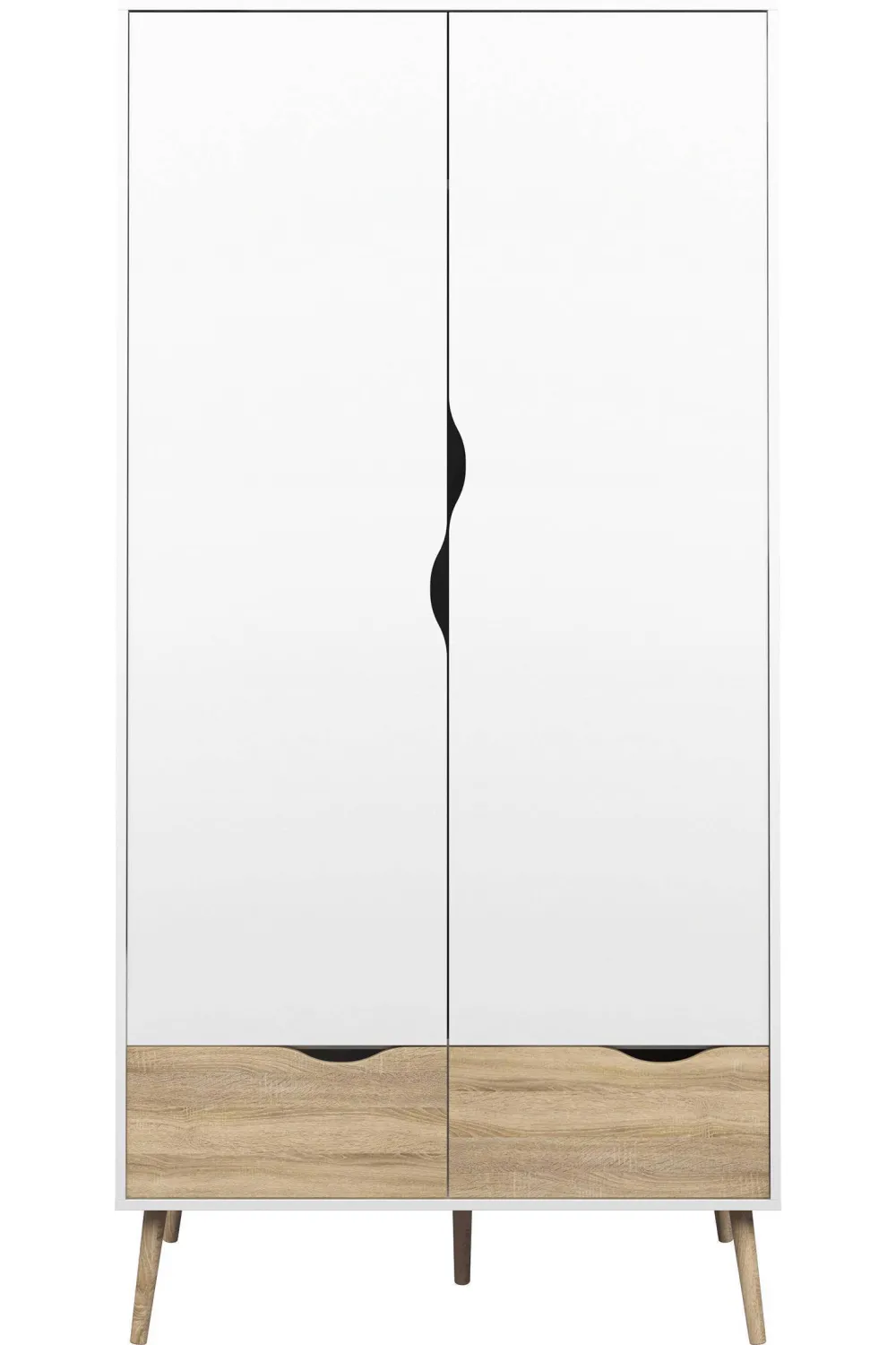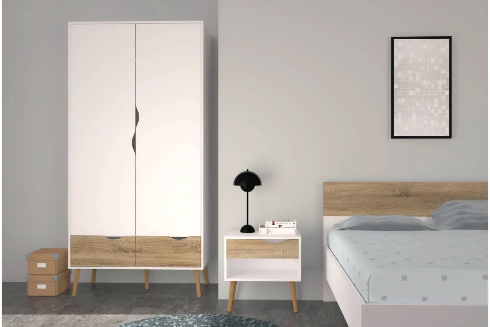 De Prachtige Wit/Eiken Afwerking Van De Oslo Kledingkast Geeft Een Echte Scandinavische Look Aan Jouw Slaapkamer. De Leuke Houtkleurige Poten Maken Het Helemaal Af. Maak De Look Van Je Slaapkamer Compleet Met De Bijpassende Meubelen Uit De Oslo Serie.
