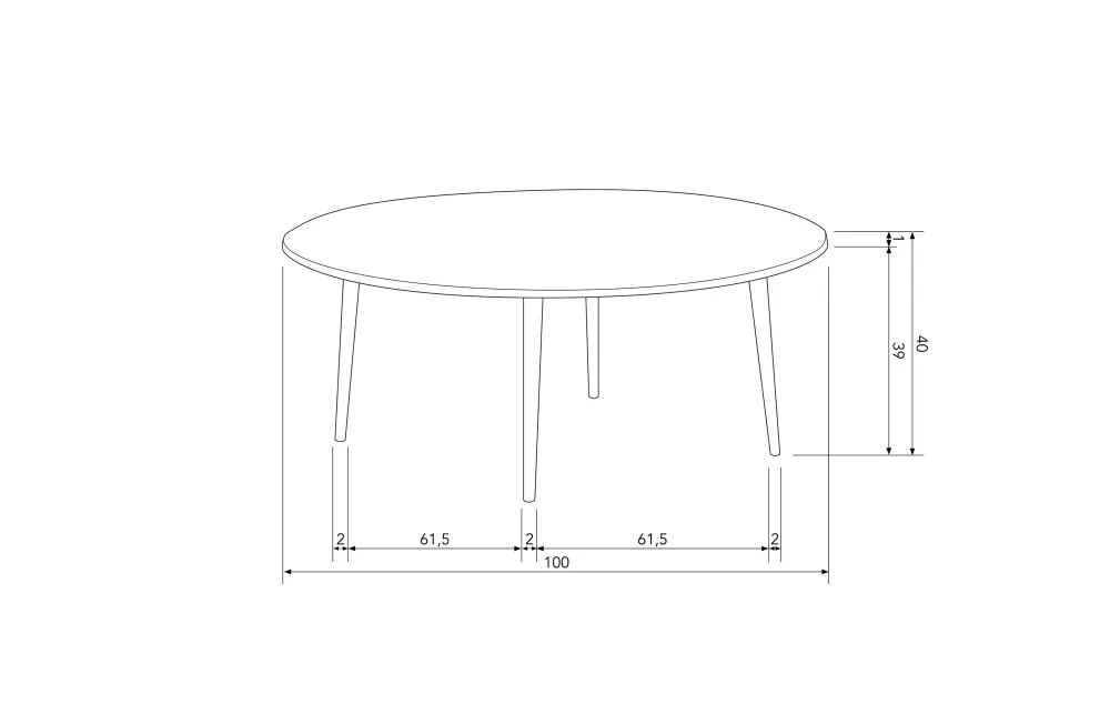 De Kalu Salontafel Is 40 Cm Hoog. In De Diameter Is De Salontafel Een Zeer Royale 100 Cm. Het Blad Is 1 Cm Dik. De Vier Poten Zijn Elk 39 Cm Hoog En A 2 Cm. De Afstand Tussen De Poten Is 61,5 Cm. Je Kunt De Bijzettafel Met Een Gerust Hart Neerzetten, Met Een Gewicht Van 27,5 Kg Staat Kalu Zeer Stabiel Op Zijn Plek.