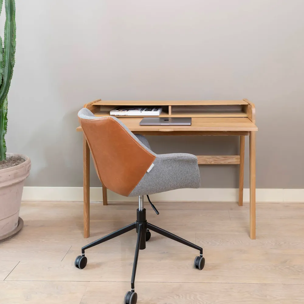 De Kuip Van De Doulton Office Stoel Is Bekleed Met Een Zachte, Grijze Stof. De Cognac Accenten Van Vintage Imitatieleer Op De Zitting En Rug Voegen Op Een Subtiele Wijze Net Wat Extra Toe Aan Deze Zuiver Bureaustoel. De Rugleuning Met Doorgestikt Detail Zorgt Voor Extra Zitcomfort En Een Eigentijdse Uitstraling. In Combinatie Met Het Onderstel Van Zwart Staal Draagt Dit Bij Tot De Stoere Uitstraling Van De Zuiver Doulton Office. Dankzij De 4 Wieltjes Verplaats Je Je Gemakkelijk In Deze Stoel. Ook Is ‘Ie In Hoogte Verstelbaar. Zo Zit Je Altijd Goed, Aan Welke Tafel Of Bureau Je Ook Werkt.