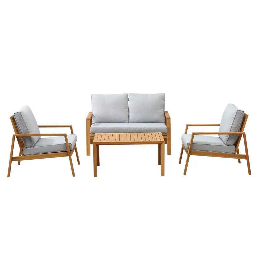 Deze Lichtgrijze Loungeset Cambrils Van Wehkamp Home Is Gemaakt Van Acacia Hout En Bestaat Uit Een 2-Zitsbank, Twee Loungestoelen En Een Koffietafel. De Strak Vormgegeven Houten Loungeset Past In Vele Tuinstijlen En Heeft Een Comfortabele Zit.