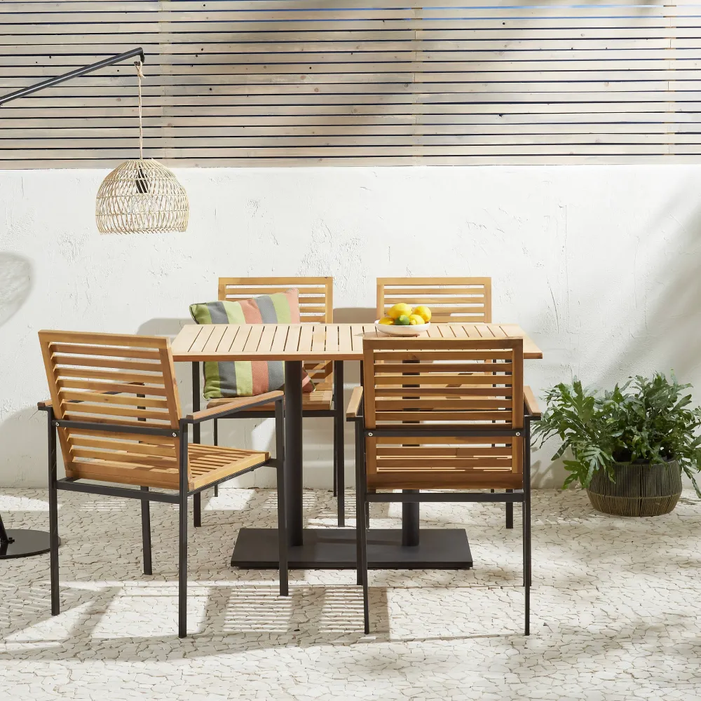 De Bistroset Beira/Elverum Bestaat Uit De Tuintafel Beira Van Het Merk Nous Garden En Vier Keer De Tuinstoel Elverum. Deze Bistroset Is Perfect Geschikt Om Een Leuk Plekje Te Maken In Je Tuin Of Op Je Balkon. De Tuintafel Beira Is Van Teak Hout En De Tuinstoel Elverum Is Gemaakt Van Fsc-Gecertificeerd Acacia Hout En Is Dan Ook Een Duurzame Keuze! Het Frame Is Van Gegalvaniseerd Staal.