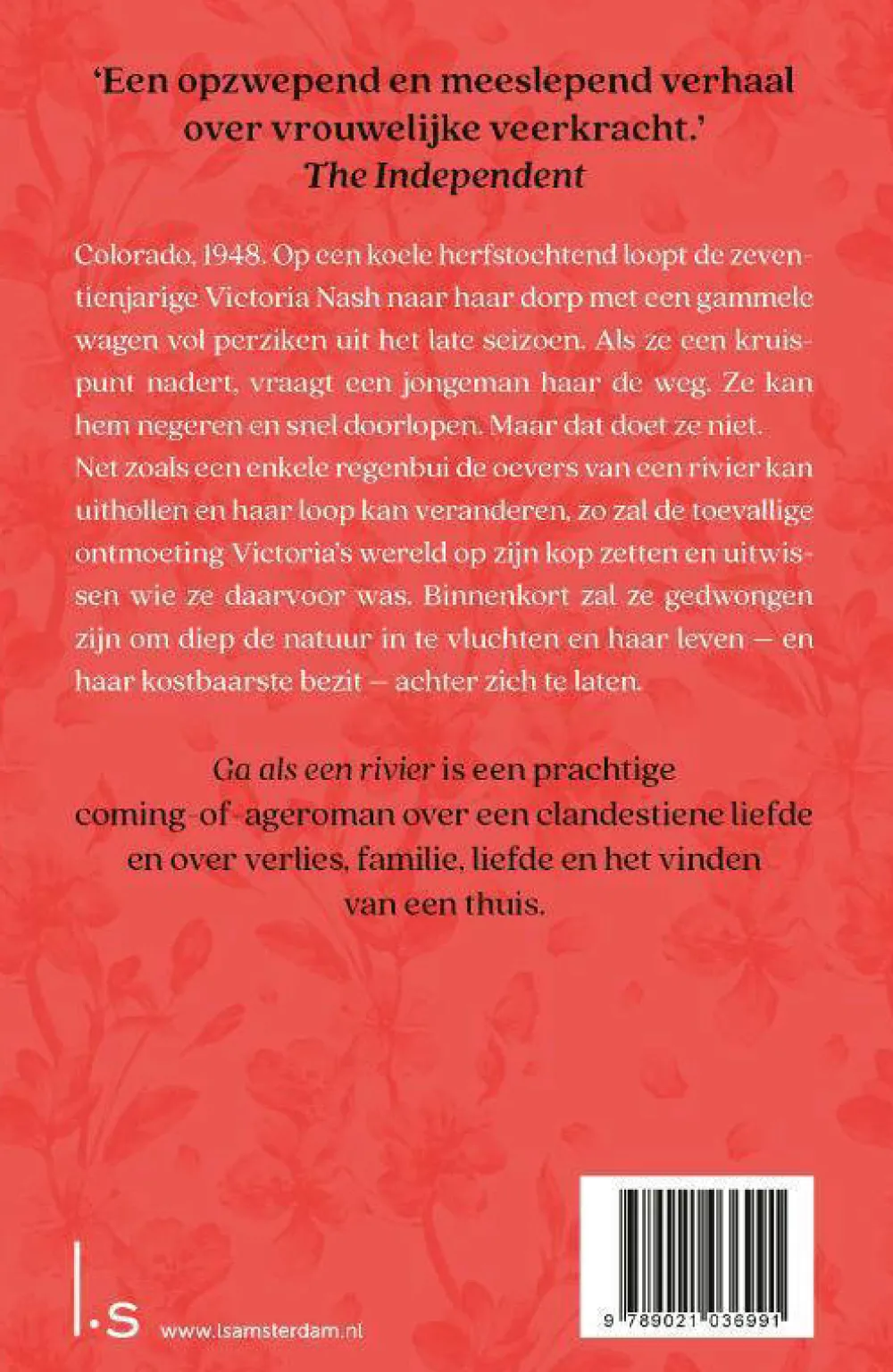 Colorado, 1948. Op Een Koele Herfstochtend Loopt De Zeventienjarige Victoria Nash Naar Haar Dorp Met Een Gammele Wagen Vol Perziken Uit Het Late Seizoen. Als Ze Een Kruispunt Nadert, Vraagt Een Jongeman Haar De Weg. Ze Kan Hem Negeren En Snel Doorlopen. Maar Dat Doet Ze Niet.Net Zoals Een Enkele Regenbui De Oevers Van Een Rivier Kan Uithollen En Haar Loop Kan Veranderen, Zo Zal De Toevallige Ontmoeting Victoria’S Wereld Op Zijn Kop Zetten En Uitwissen Wie Ze Daarvoor Was. Binnenkort Zal Ze Gedwongen Zijn Om Diep De Natuur In Te Vluchten En Haar Leven – En Haar Kostbaarste Bezit – Achter Zich Te Laten.Ga Als Een Rivier Is Een Prachtige Coming-Of-Ageroman Over Een Clandestiene Liefde En Over Verlies, Familie, Liefde En Het Vinden Van Een Thuis. Voor De Lezers Van Daar Waar De Rivierkreeften Zingen.