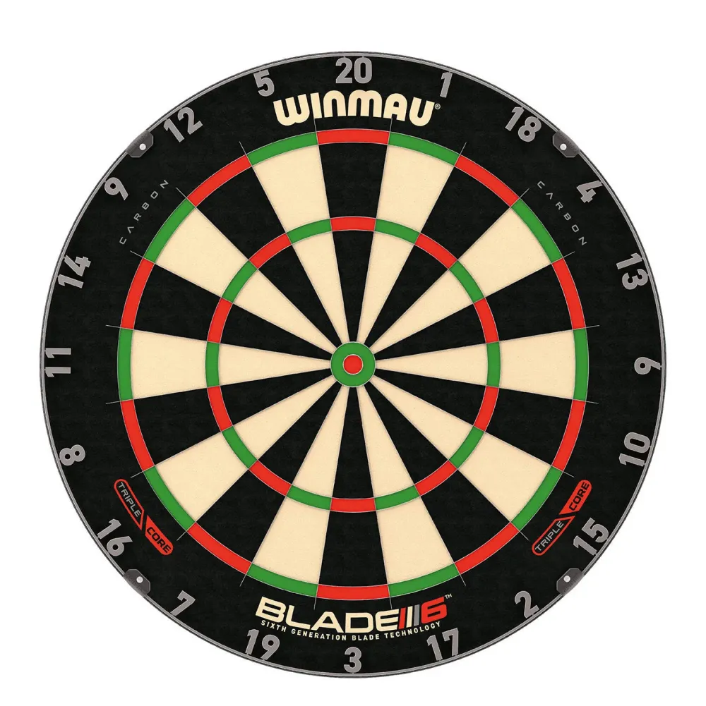 Het Blade 6 Triple Core-Dartbord Is Het Resultaat Van 30 Jaar Technische Innovatie En Is Een Enorme Sprong Voorwaarts In Het Ontwerp Van Dartborden. De Revolutionaire Triple Core-Sisalbasis Is Een Aanvulling Op De Zesde Generatie Blade-Technologie En Biedt De Ultieme Combinatie Van Optimale Vezeldichtheid En Maximale Score. De Triple Core Carbon Heeft Een Geheel Nieuw Gepatenteerd Systeem Met Een Naadloos Speeloppervlak En Een Derde, Hoge Compressielaag, Met Koolstofvezel Versterkte Sisal En ‘S Werelds Eerste Lasergesneden Anti-Glare Cijferring Voor De Ultieme Speelervaring. De Blade 6 Triple Core Heeft Ook Het Nieuwste ‘Density Controle-Draad Voor Optimale Vezeldichtheid En Verbeterde Dartretentie In De Dubbele, Treble- En Bullseye-Zones Om Optimale Scorekracht Te Verzekeren. De Volledig Geharde Bullseye En Buitenste Ring, Gemaakt Van ‘Density Control’-Draad, Zijn 25% Dunner. De Ultradunne Draad Met Een Hoek Van 60° Buigt Darts Af In Het Scoregebied En Zorgt Voor Absoluut Minimale Bounce-Outs. Het Blade 6 Triple Core-Dartbord Is Het Technisch Meest Geavanceerde Dartbord Op De Markt Met Optimale Vezeldichtheid, Ongeevenaarde Dartretentie En Maximale Score. De Blade 6 Triple Core Is Uitgerust Met Het Eenvoudig Aan Te Passen Rota-Lock Systeem En Wordt Geleverd Inclusief Het Spirit Level Systeem. Het Blade 6 Triple Core Dartbord Is Ontworpen Volgens De Officiele Specificaties Van De World Darts Federation En Wordt Erkend Door ‘S Werelds Toonaangevende Professionals.