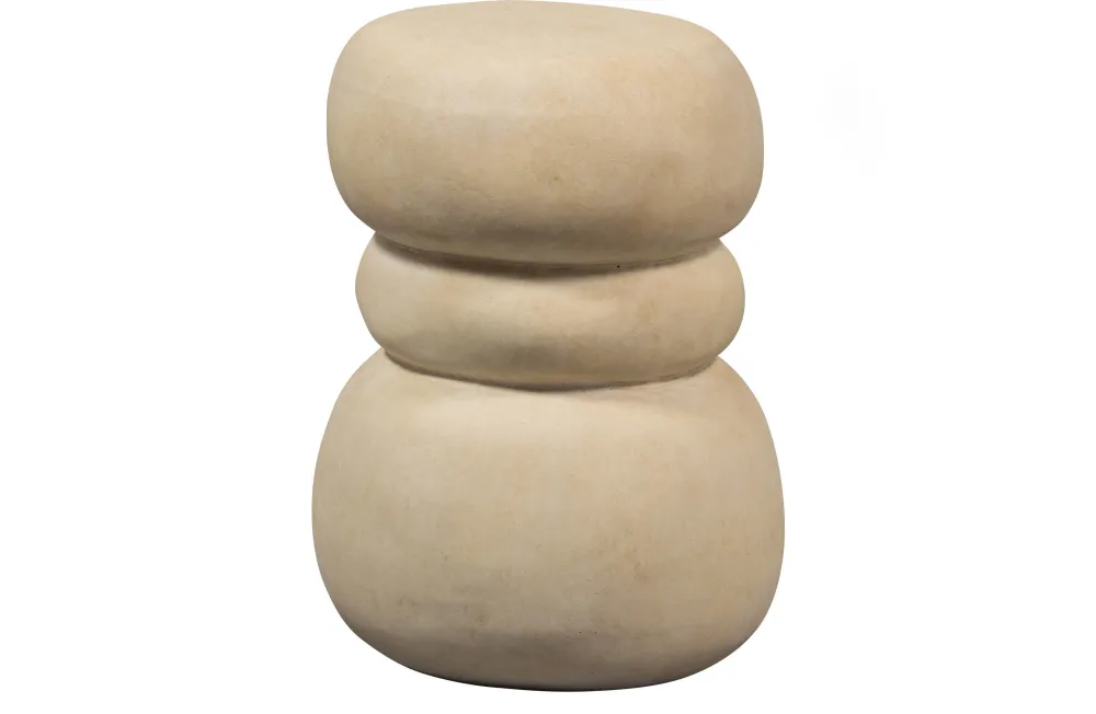 Bijzettafel Yvo Is Een Eigen Ontwerp Uit De Exclusive Collectie Van Het Nederlandse Merk Woood. Het Natuurlijk Gevormde Design Is Uitgevoerd In Betonlook Fiber Klei Met Een Vergrijsde Zandkleurige Afwerking. Een Uniek Item Met Een Stijlvol Organisch Design.