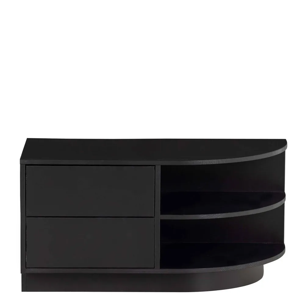 Het Finca Tv Meubel Met Rond Element Is Een Waar Pronkstuk In De Woonruimte. De Open Vakken Bieden Genoeg Ruimte Voor Het Presenteren Van Jouw Mooiste Woondecoratie. De Twee Laden Houden Nog Eens Een Ruime Opbergruimte Uit Het Zicht. De Onderrand Van Het Tv Meubel Laat 7 Cm Ruimte Over Aan De Voorzijde, Hierdoor Lijkt Het Meubel Te Zweven.