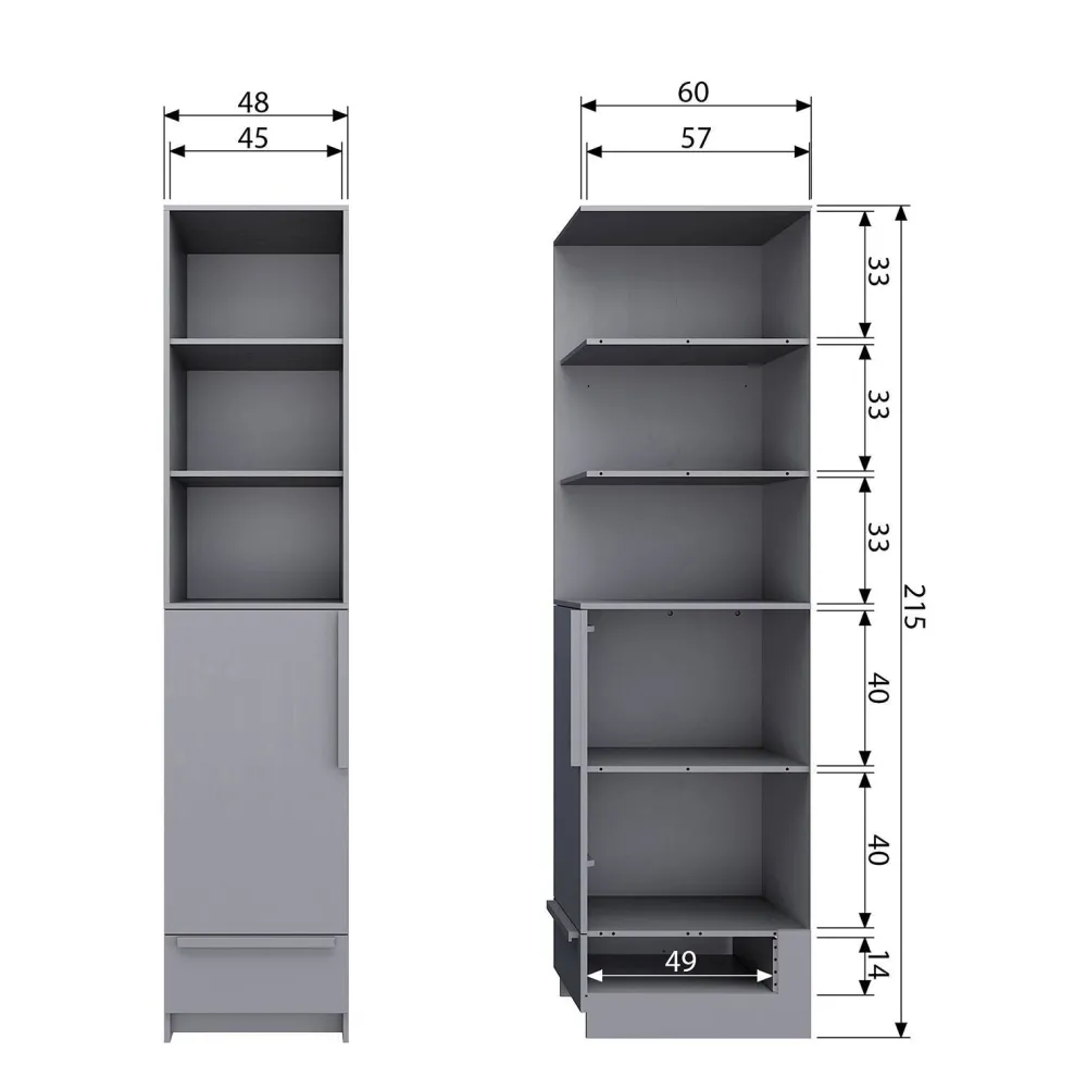 De Pure Kast (215X48X60) Is Een 1-Deurs Legkast En Maakt Deel Uit Van De Splitdeur Serie. De Bovenzijde Van De Kast Bestaat Uit Drie Open Vakken Van 32,5 Cm Hoog. De Onderzijde Van De Kast Heeft Een Deur Voorzien Van Softclose Systeem Met Een Robuuste Greep Waarachter Zich Nog Twee Vakken Bevinden Van 41 Cm Hoog. Onderaan De Pure Kast Bevindt Zich Nog Een Lade, Voorzien Van Softclose Systeem, Waar Je Spullen In Kunt Opbergen Die Onttrokken Worden Aan Het Oog. De Pure Kasten Serie, Bestaat Uit Een 1-, 2- En 3-Deurs Kast Voorzien Van Een Lockerdeur Of Een Splitdeur. De Kastenserie Is Schakelbaar, Waardoor Je Een Kastenwand Op Maat Kunt Maken. Altijd Precies Wat Je Nodig Hebt Dus!